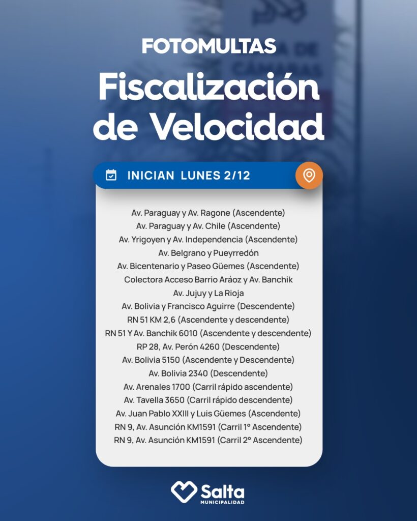 A partir del 2 de diciembre, Salta activará un sistema de fiscalización electrónica para controlar infracciones de tránsito. Las cámaras registrarán excesos de velocidad, semáforos en rojo y más, con multas reinvertidas en seguridad vial.