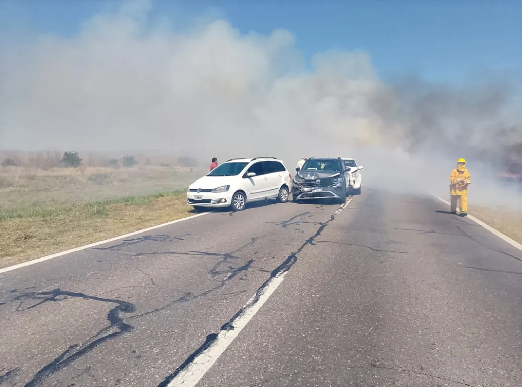 Un siniestro vial se registró este lunes al mediodía sobre la Ruta Nacional 9, a la altura de Rosario de la Frontera, cuando la baja visibilidad provocada por un incendio forestal derivó en un choque múltiple.